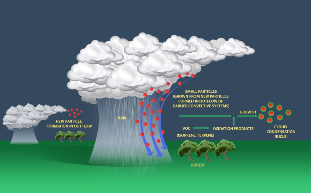 காற்று இந்த CCN-களை கொண்டு சென்று மேகங்களுடன் இணைக்கிறது, இது மேகங்களை “கருத்தரிக்க” செய்து மழை பொழிய வைக்கிறது. இது ஆண்-பெண் இணைவு போன்ற உருவகமாகக் காணலாம்: CCN (விதை போல்) நீராவியுடன் (முட்டை போல்) இணைந்து துளிகளை உருவாக்குகிறது.